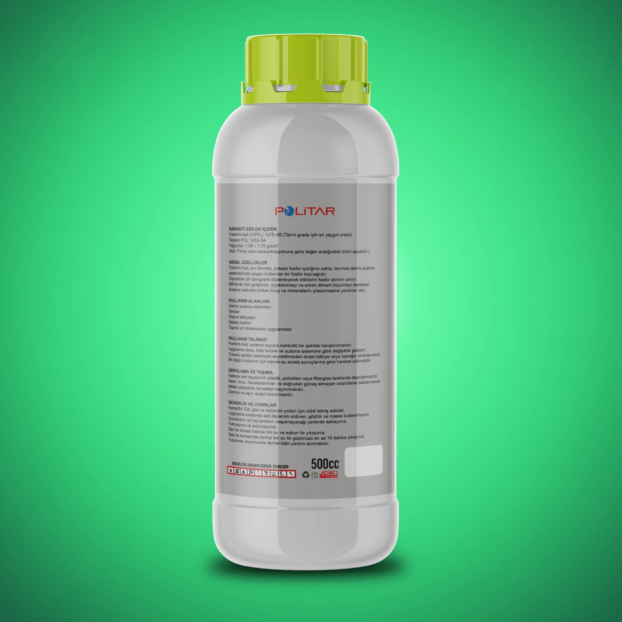 • Yüksek asidite nedeniyle seyreltilmeden direkt bitkiye veya toprağa verilmemelidir.