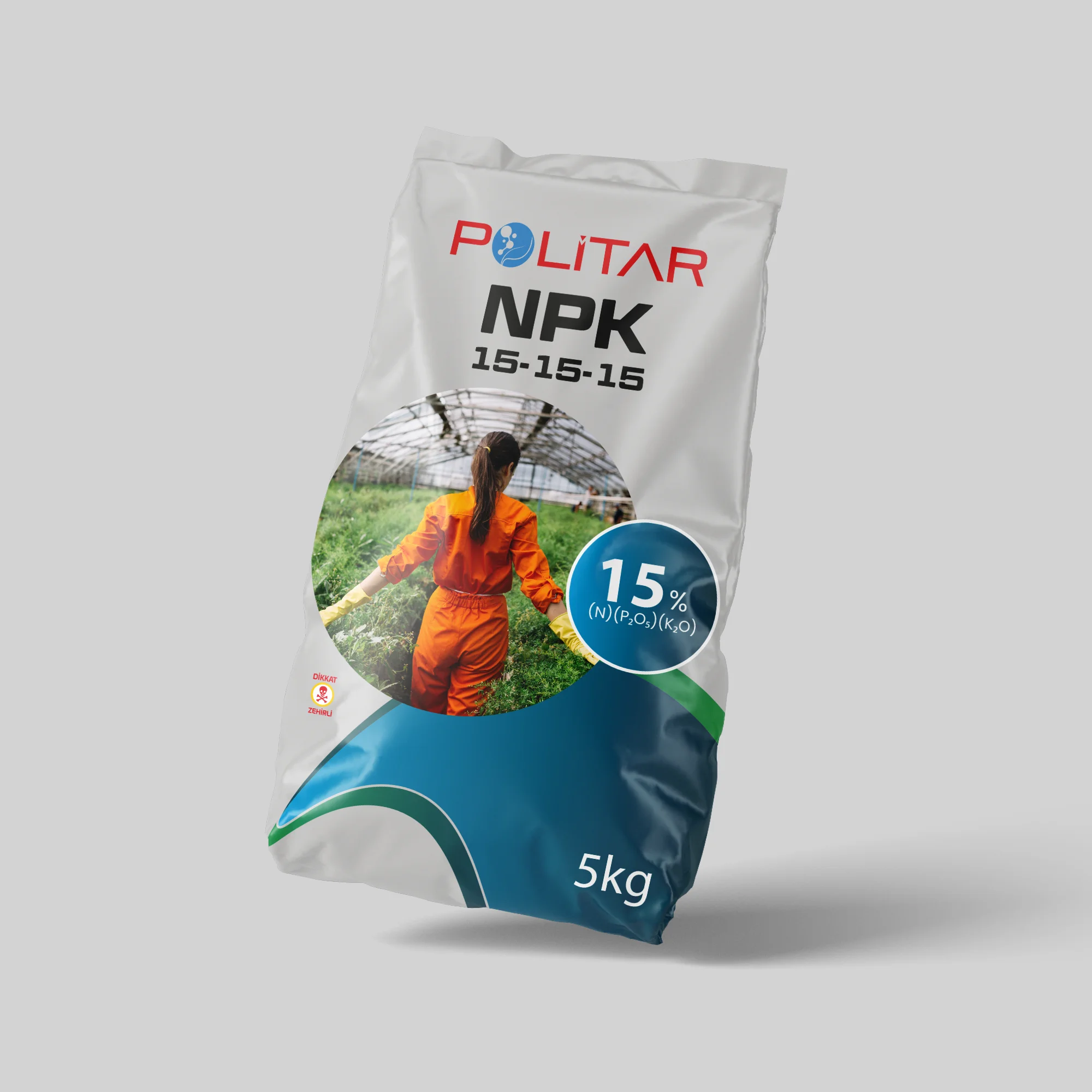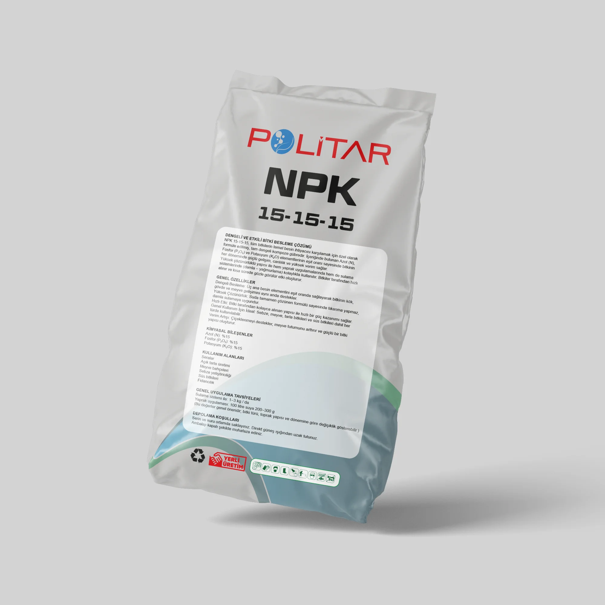 NPK 15-15-15, bitkilerin temel besin ihtiyacını karşılayan, dengeli formüle edilmiş kompoze gübredir. Azot (N), Fosfor (P₂O₅) ve Potasyum (K₂O) elementlerinin eşit oranlarda bulunması sayesinde bitkilerin tüm gelişim dönemlerinde sağlıklı büyüme, güçlü kök yapısı ve yüksek verim sağlar.
