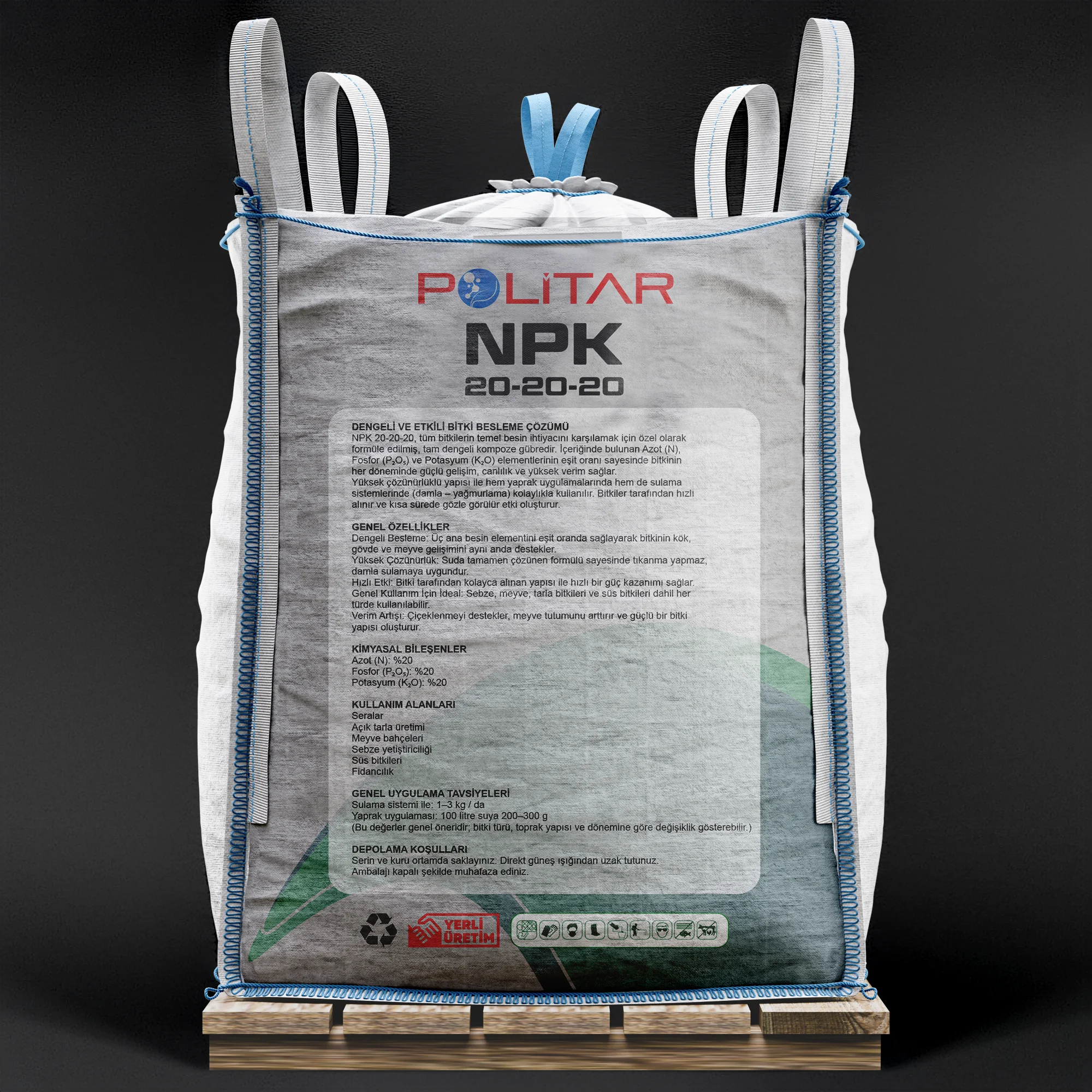 NPK 20-20-20, tüm bitkilerin temel besin ihtiyacını karşılamak için özel olarak formüle edilmiş, tam dengeli kompoze gübredir. İçeriğinde bulunan Azot (N), Fosfor (P₂O₅) ve Potasyum (K₂O) elementlerinin eşit oranı sayesinde bitkinin her döneminde güçlü gelişim, canlılık ve yüksek verim sağlar.