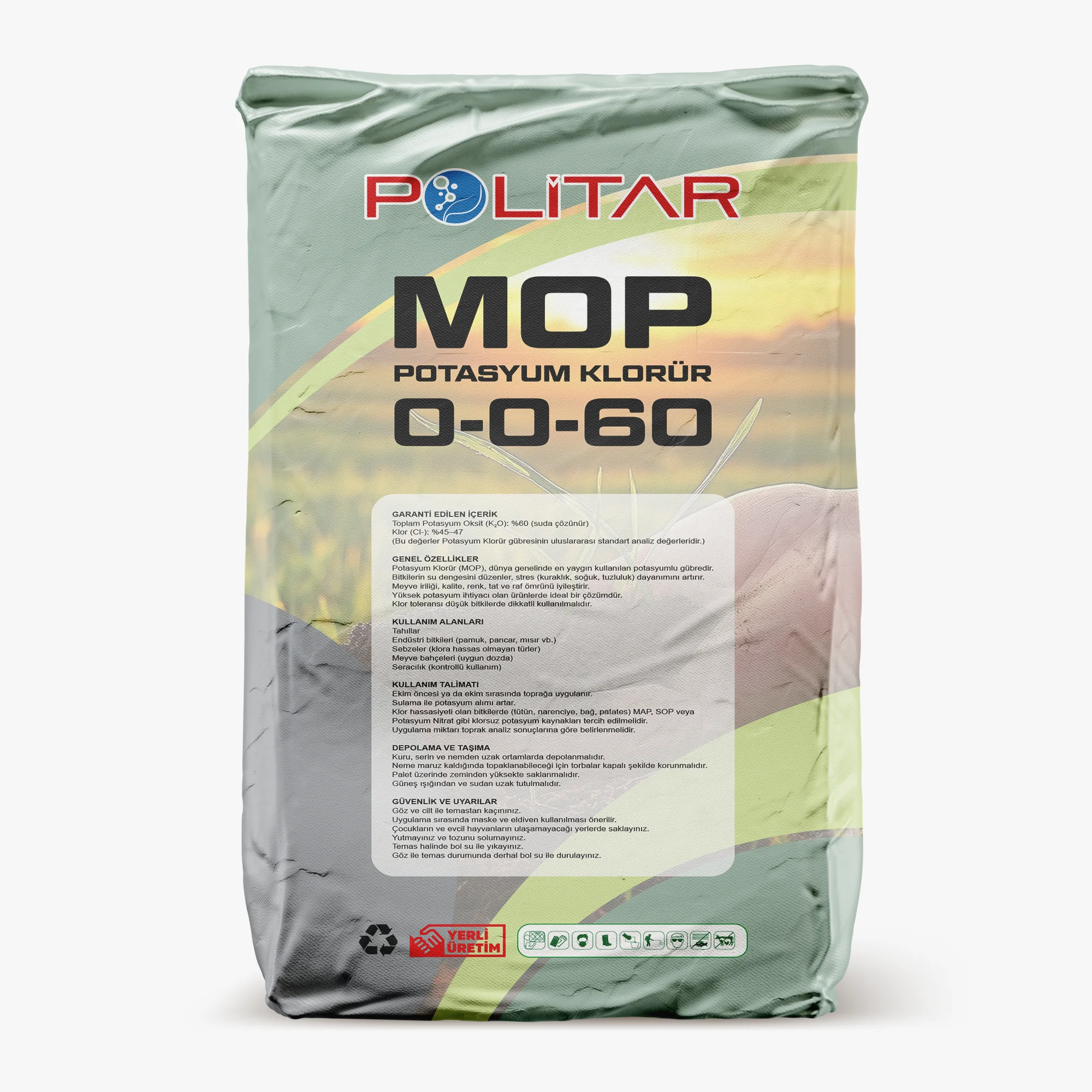 • Toplam Potasyum Oksit (K₂O): %60 (suda çözünür)
