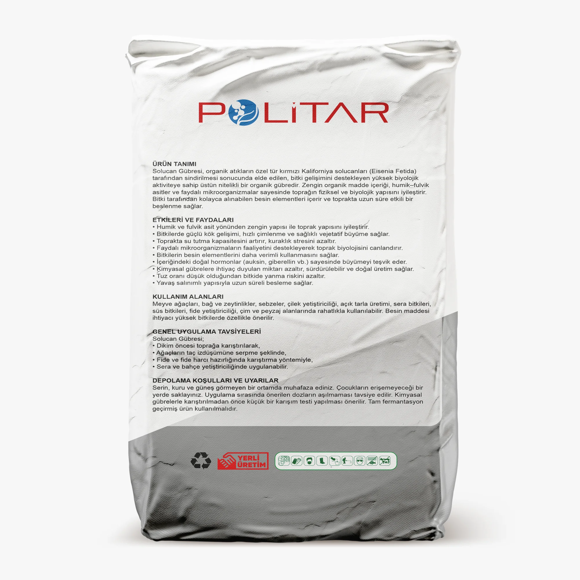 Solucan Gübresi, organik atıkların özel tür kırmızı Kaliforniya solucanları (Eisenia Fetida) tarafından sindirilmesi sonucunda elde edilen, bitki gelişimini destekleyen yüksek biyolojik aktiviteye sahip üstün nitelikli bir organik gübredir. Zengin organik madde içeriği, humik–fulvik asitler ve faydalı mikroorganizmalar sayesinde toprağın fiziksel ve biyolojik yapısını iyileştirir. Bitki tarafından kolayca alınabilen besin elementleri içerir ve toprakta uzun süre etkili bir beslenme sağlar.