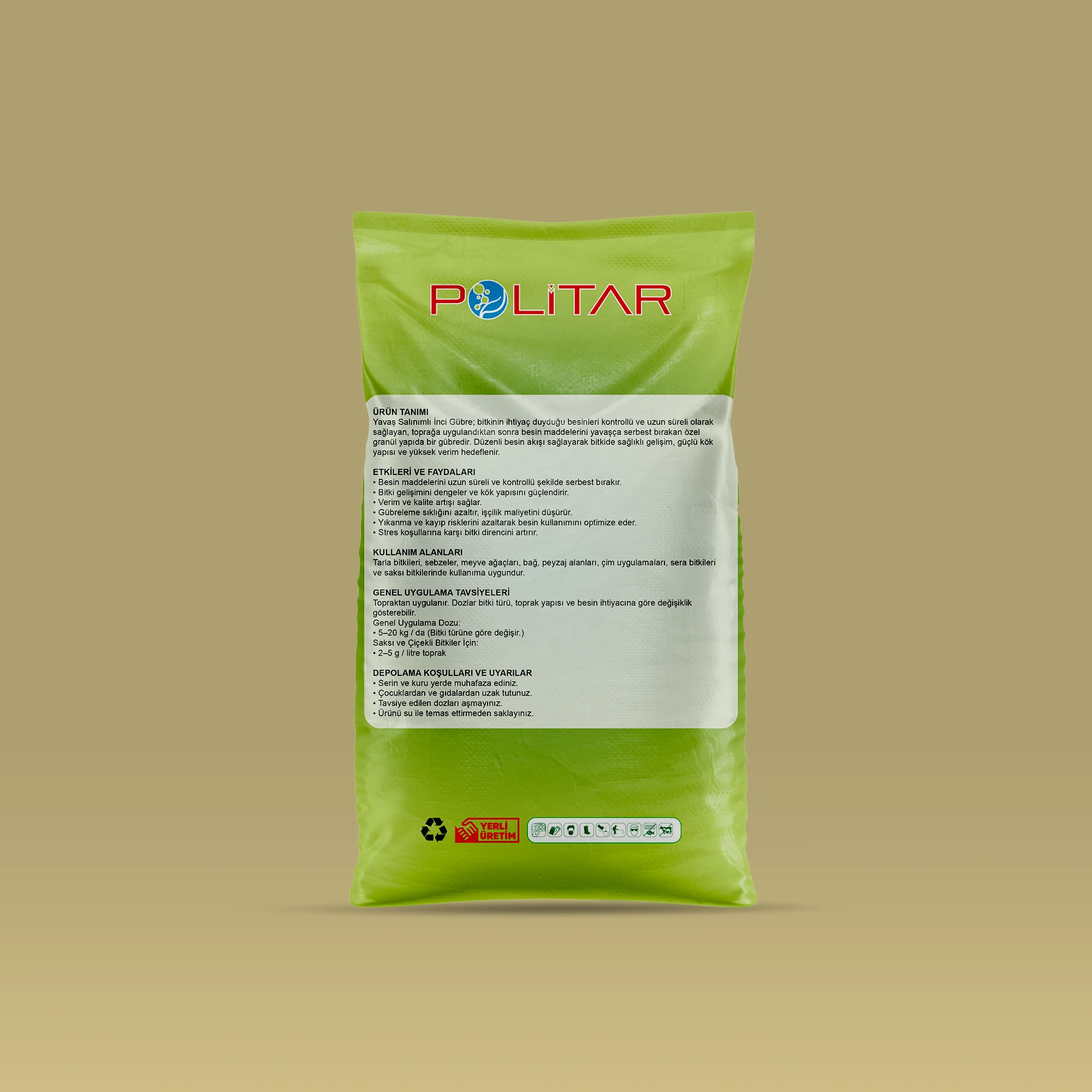 Yavaş Salınımlı İnci Gübre; bitkinin ihtiyaç duyduğu besinleri kontrollü ve uzun süreli olarak sağlayan, toprağa uygulandıktan sonra besin maddelerini yavaşça serbest bırakan özel granül yapıda bir gübredir. Düzenli besin akışı sağlayarak bitkide sağlıklı gelişim, güçlü kök yapısı ve yüksek verim hedeflenir.